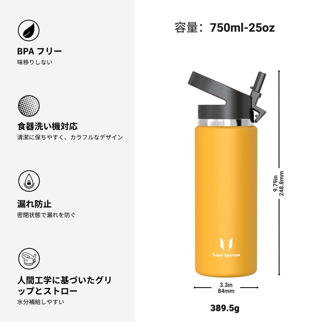 Бутылка для воды Super Sparrow, детская бутылка с вакуумной изоляцией, 750 мл, бутылка для воды с широким горлом, не содержащая BPA, герметичная, эргономичная бутылка для воды с идеальным дизайном