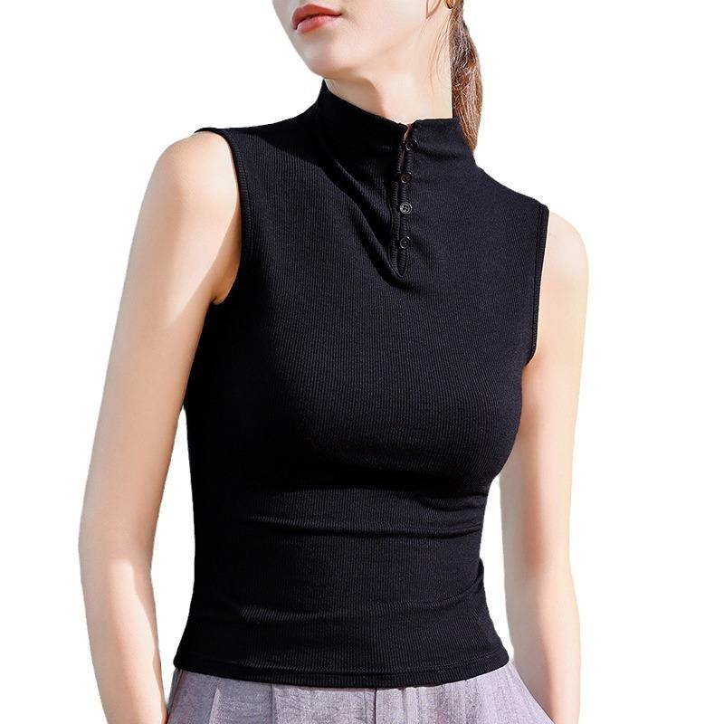 Черная футболка без рукавов, женская, новая, ранняя осень, полуводолазка, тонкая рубашка с низом, облегающий и тонкий верх