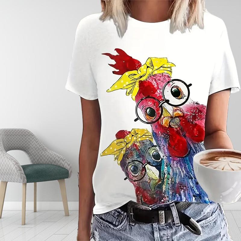 Женская летняя футболка с принтом петуха, футболки с коротким рукавом, повседневные топы с принтом — купить товар онлайн с бесплатной доставкой по всему миру!