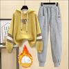 Осенне-зимний женский теплый флисовый комплект из толстовок с капюшоном в стиле пэчворк, повседневная рабочая одежда, брюки, комплект из двух предметов, женский спортивный костюм для бега