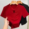 Новая китайская футболка с короткими рукавами для женщин, новая женская футболка с воротником-стойкой, пуговицами, плиссированная, облегающая талию, короткая футболка