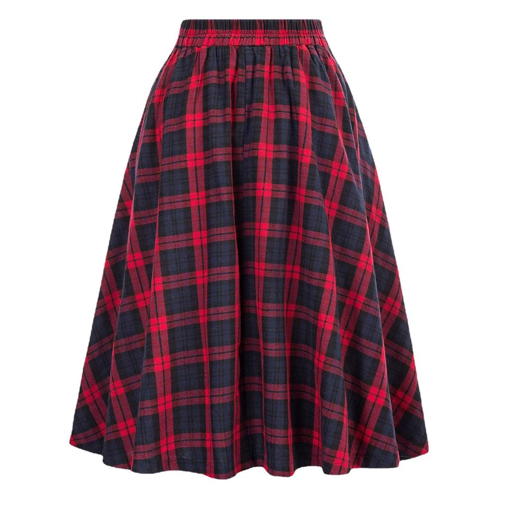 Женская юбка с эластичной резинкой на талии и широким подолом, юбка свободного кроя с клетчатым принтом и цветными блоками, длиной до щиколотки, с карманами, в стиле ретро, макси-юбка для леди