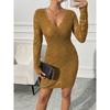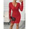 Весенние женские платья с V-образным вырезом, сексуальные, кружевные, тонкие, с длинным рукавом