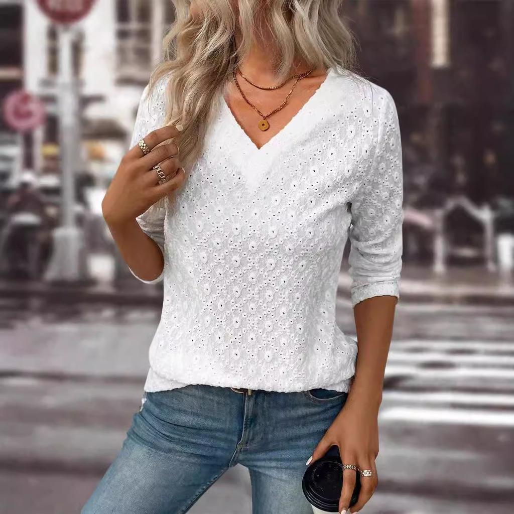 Модная женская футболка с длинным рукавом, однотонная жаккардовая дышащая футболка, блузка, топ