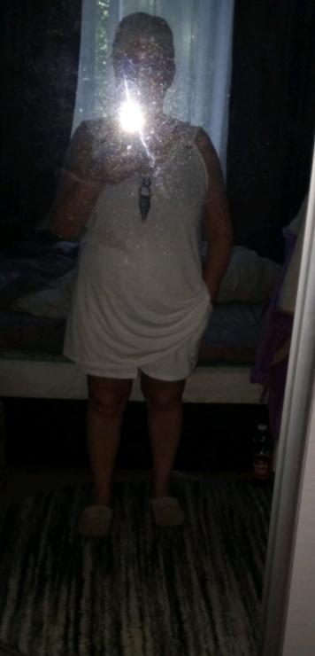 Огромный просто и в прорезях подмышками, длинная кофта как платье, прям до колен, шорты закрывает, шорты широченные, но в резинке норм. Попробую перешить🙄