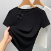 Черная футболка с короткими рукавами для женщин, летняя новая однотонная футболка из хлопка в стиле ретро с принтом «сад», новый китайский стиль, топ на пуговицах