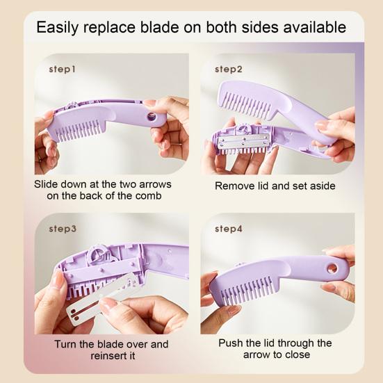 Представляем инновационную расческу для челки — универсальный инструмент для укладки волос, сочетающий удобство и безопасность.. Эта расческа со встроенными лезвиями, предназначенными для безопасного и точного подравнивания, имеет 3-ступенчатую регулировку для разных объемов и стилей волос..