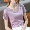 Футболка из хлопка с короткими рукавами, женская новая женская одежда, темпераментная футболка с V-образным вырезом из чистого хлопка, однотонный топ высокого класса