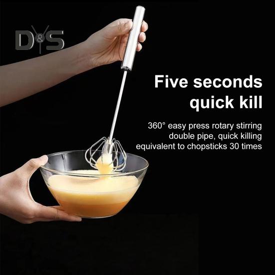 Удобный дизайн: Благодаря встроенной вращающейся пружинной ручке с нажимным механизмом автоматического вращения этот венчик для яиц упрощает процесс взбивания яиц и равномерного взбивания нежных кремов.. Экономьте время и силы на кухне благодаря интуитивно понятному дизайну.