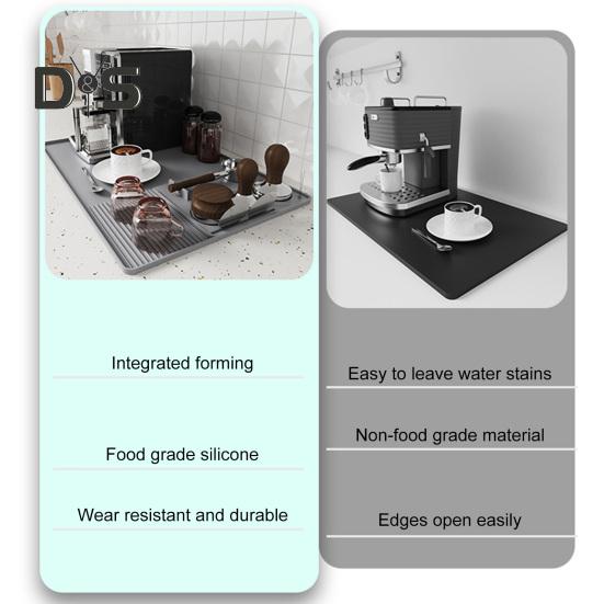 Представляем силиконовый коврик для кофе — универсальное и практичное дополнение к вашей кухне.. Эта дренажная накладка имеет встроенную полосатую конструкцию с канавками, которая обеспечивает быстрое высыхание, а приподнятые края помогают удерживать жидкость и предотвращают случайные проливания.. Изготовленный из водонепроницаемого силикона, этот коврик защитит вашу столешницу от протечек и пятен..