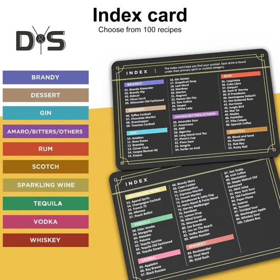 Повысьте свои навыки миксологии с помощью нашего набора карточек с рецептами коктейлей! Погрузитесь в более чем 100 рецептов коктейлей, представленных на прочной, высококачественной плотной бумаге.. Каждая карточка — это настоящая сокровищница ингредиентов, пошаговых инструкций, исторических сведений и профилей вкусов для всестороннего опыта миксологии.