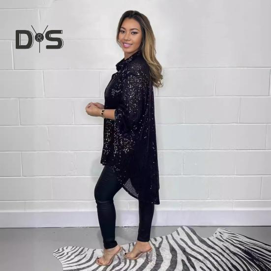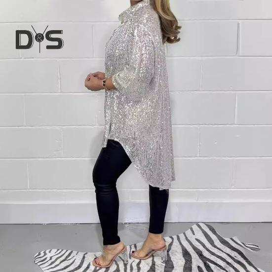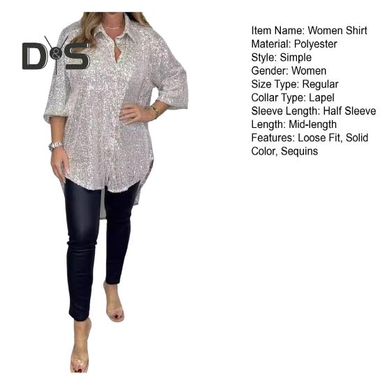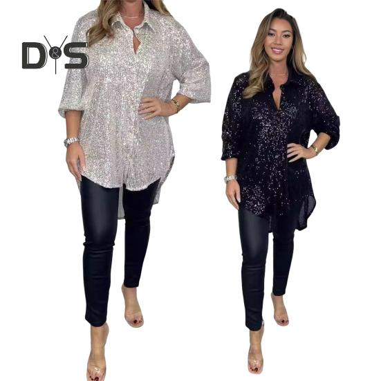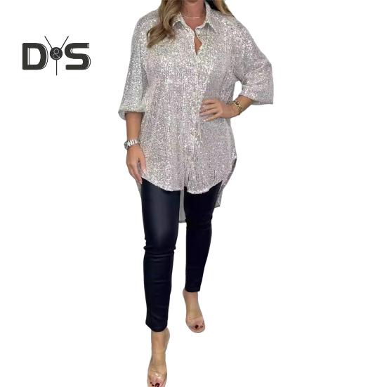 Поднимите свой стиль с этой шикарной женской рубашкой. Эта рубашка, изготовленная из дышащего и приятного для кожи полиэстера, обеспечивает комфорт при ношении.. Модный дизайн с пайетками подчеркнет вашу идеальную фигуру, а крой средней длины добавит элегантности вашему образу..