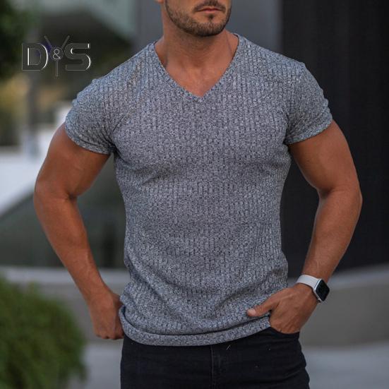 Материал высокого качества: Дополните свой повседневный гардероб этой универсальной мужской футболкой с V-образным вырезом, изготовленной из высококачественного полиэфирного волокна.. Простой, но стильный дизайн отличается однотонной расцветкой, короткими рукавами и подчеркивающим фигуру V-образным вырезом, что придает изделию современный вид.
