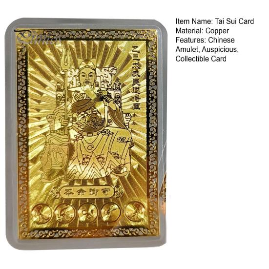 Представляем карту Тай Суй — великолепно выполненную карту-амулет, которая станет потрясающим дополнением к любой коллекции.. Эта открытка, отличающаяся изысканными деталями и мастерством исполнения, демонстрирует высокий уровень художественного мастерства.. Почувствуйте богатую традиционную китайскую культуру с помощью этой уникальной карты-амулета, которая несет в себе благоприятные символические значения.. Расширьте свой духовный путь и пригласите благословения в свою жизнь с помощью его захватывающего дизайна.