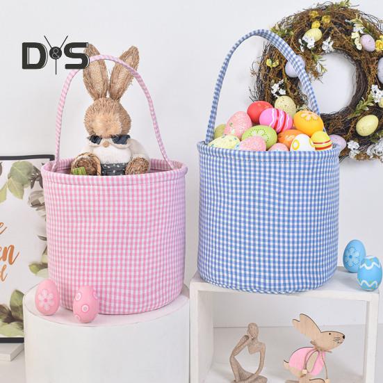 Пасхальное ведерко в клетку для детей, сумка для хранения в детской, подарочная корзина для новорожденных с ручкой для вечеринок по поиску пасхальных яиц