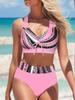 Модный розовый цветочный принт пляжная одежда летние женские купальники сексуальные купальники женские двухсекционные бикини купальники S-5XL