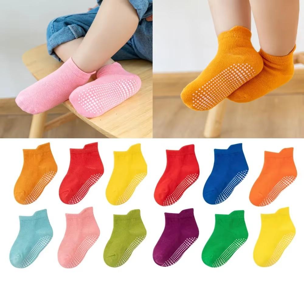 Детские носки Летние Детские Однотонные Яркие Противоскользящие Носки-лодочки Набор 6 шт./набор