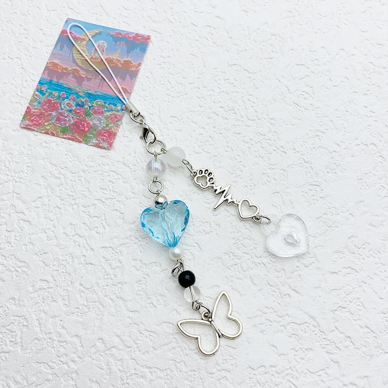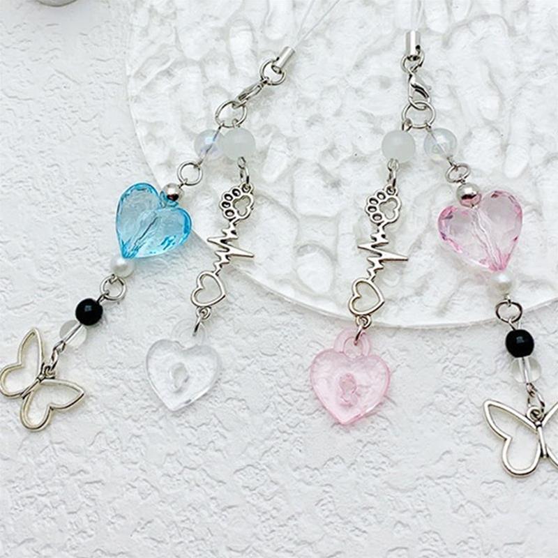 Милая цепочка для мобильного телефона с бабочкой и сердечком, милый брелок для ключей, рюкзак с пряжкой, подвеска, сумка, подвесные украшения, подарок для девочки