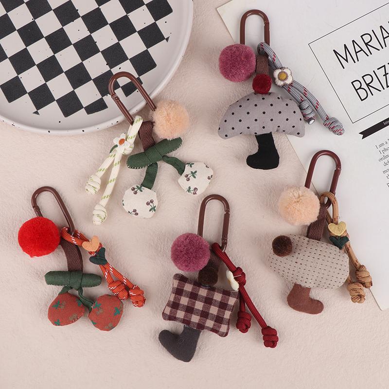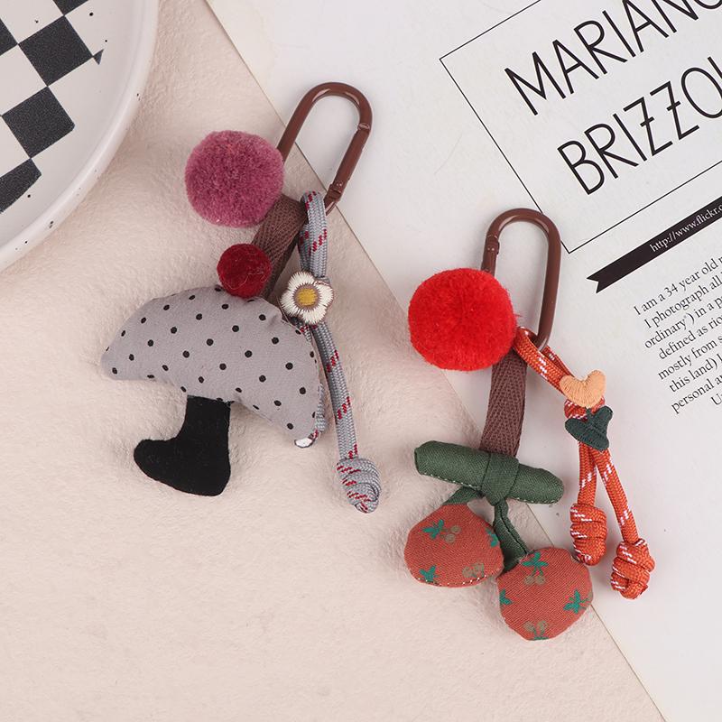 Корейский плюшевый шар-брелок в виде гриба вишни, винтажный брелок в стиле Харадзюку, сумка-подвеска, рюкзак, подвесное украшение