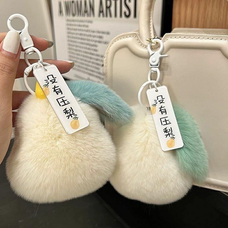 Милый брелок в виде фруктовой груши, помпон, брелок для женщин и девочек, креативный брелок в виде груши с листьями, брелок на сумке, автомобильный брелок