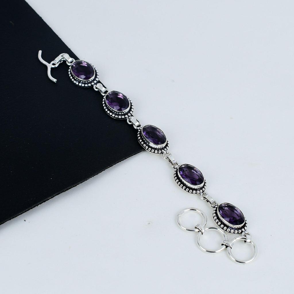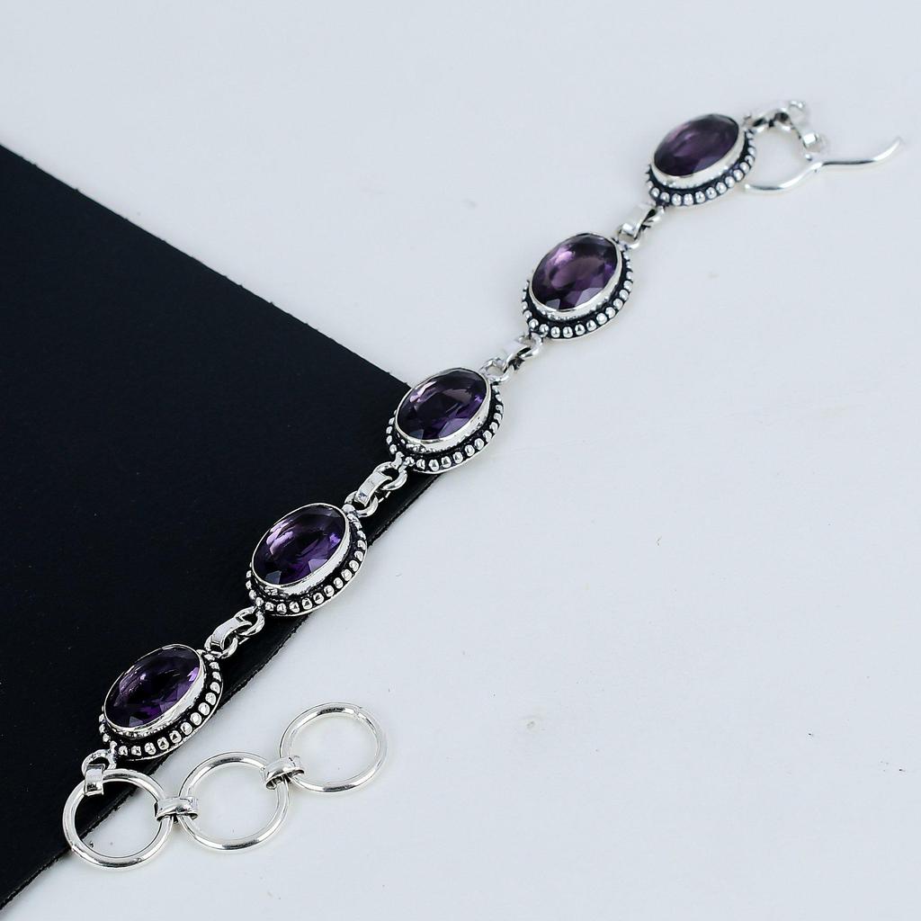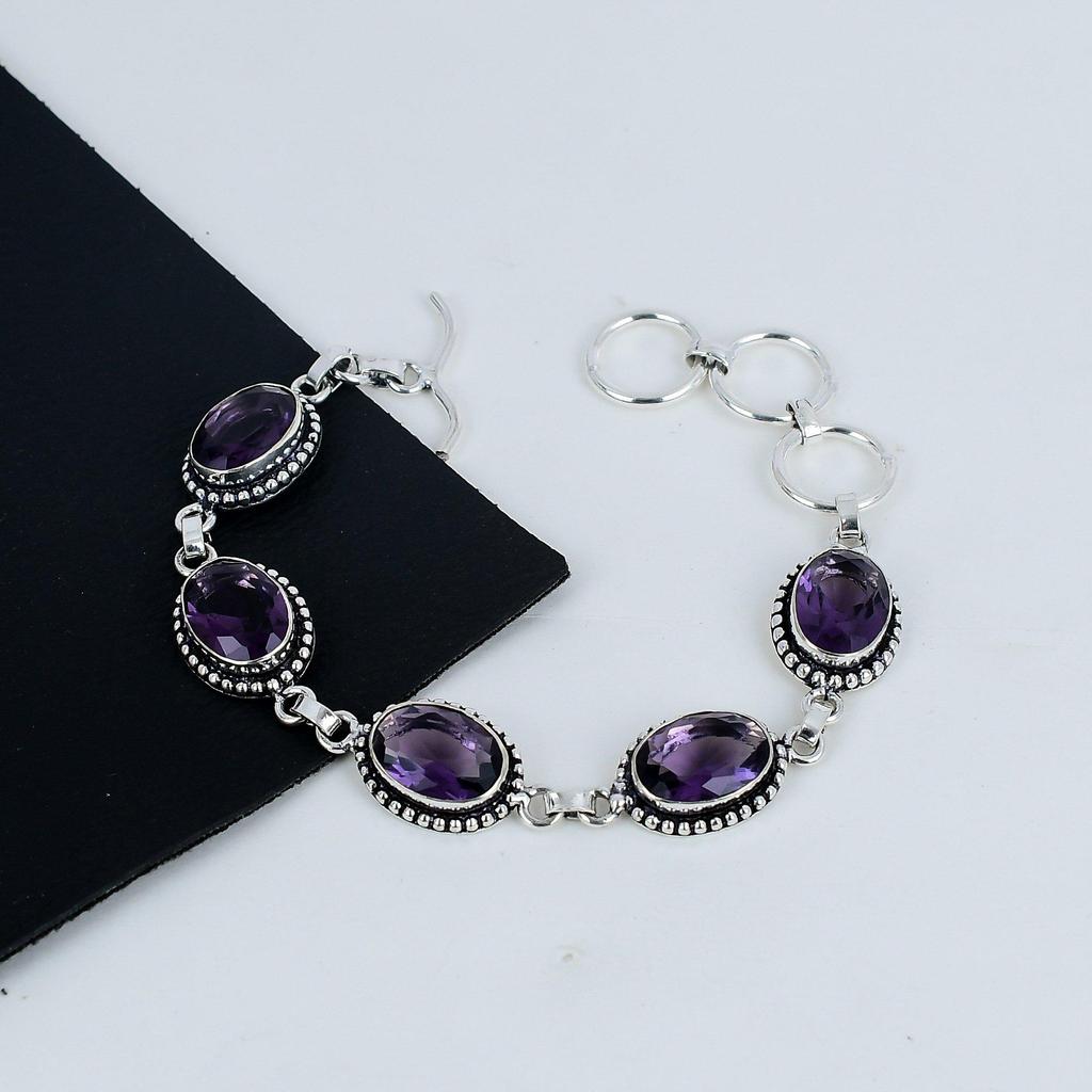 Изящный браслет из серебра 925 пробы с драгоценными камнями и аметистом, браслет из розового кварца для жены, браслет унисекс, подарок на годовщину для жены