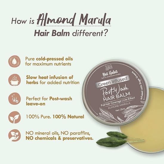 Бальзам для волос Nat Habit Almond Marula для мужчин и женщин, секущиеся кончики, разглаживающий, выпрямляющий, кондиционирующий и вьющиеся волосы (Упаковка 1 шт., 25 мл)