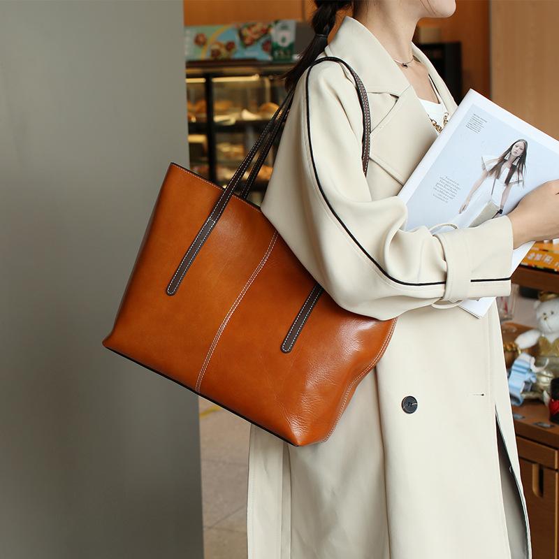 Сумка-тоут из натуральной кожи, женская, большая вместимость, винтажная сумка через плечо, женская сумка для поездок на работу, большая сумка через плечо под мышкой