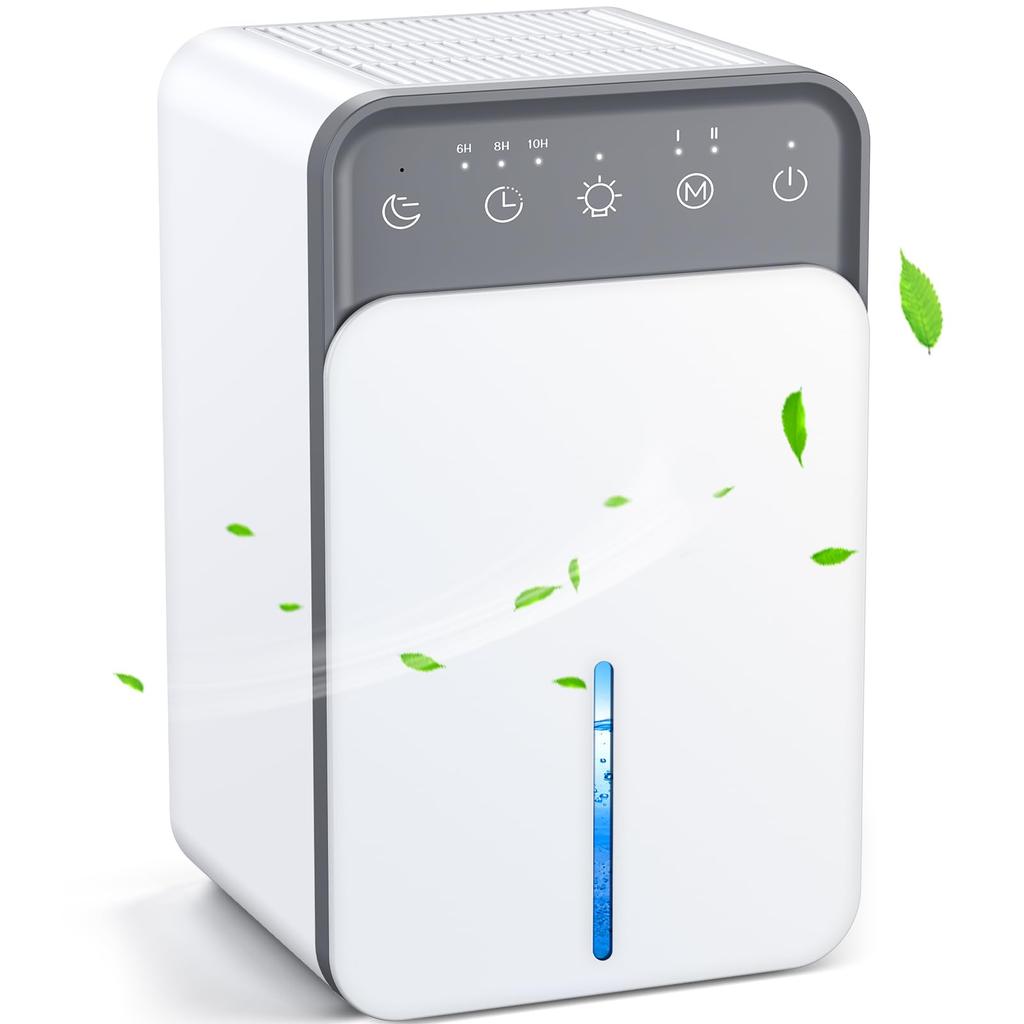 [7-цветная атмосферная лампа с компактным освещением] 7-цветная атмосферная лампа со светодиодной подсветкой создает комфортную атмосферу. Это небольшой осушитель воздуха с компактными размерами 15*13,5*24,1 см и легким весом около 1,05 кг, а также конструкцией с ручкой, которая позволяет легко перемещать его и сливать воду.. Его можно разместить на полу или на столе, поэтому он отлично подходит для небольших помещений, где влажность является проблемой, например, для комнат, где вы живете одни, прихожих, кладовок, шкафов, гардеробных, кухонь, ванных комнат, гаражей и т. д.