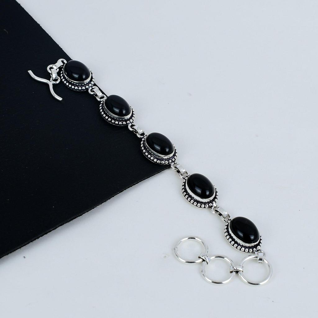 Изящный браслет из черного оникса ручной работы из стерлингового серебра 925 пробы, браслет из черного оникса для жены, браслет унисекс, праздничный подарок для любимой