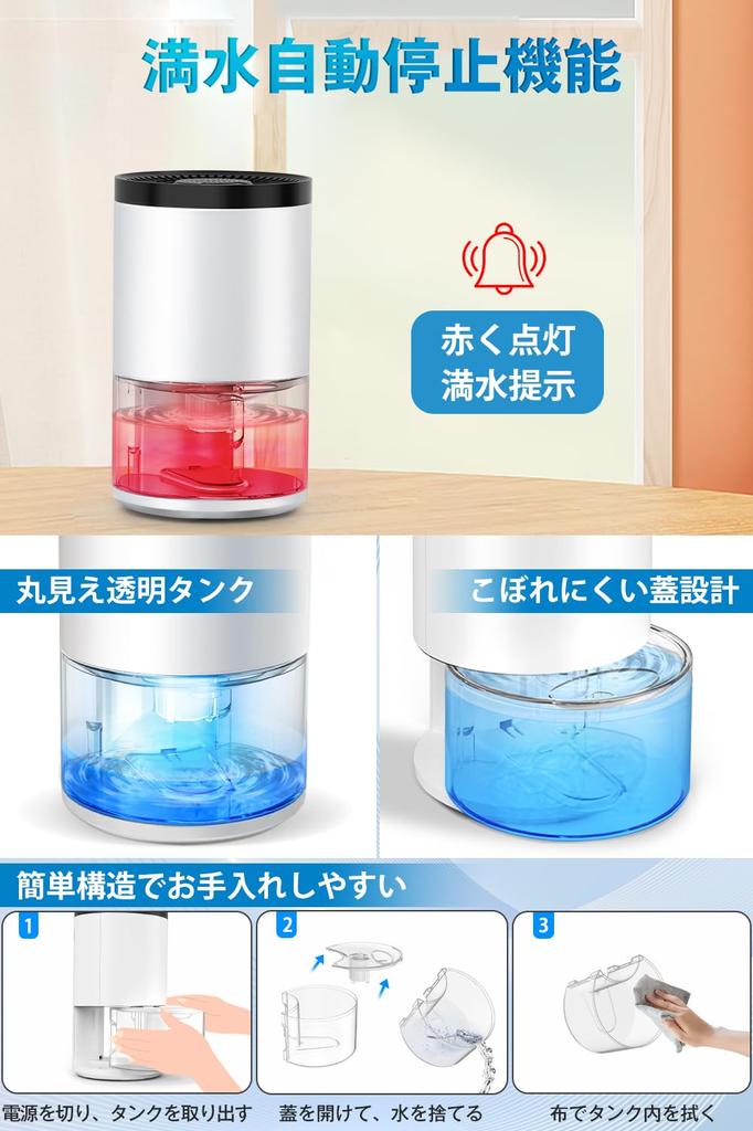 [Резервуар для воды большой емкости 1000 мл, функция безопасного слива, безопасное использование] Прозрачный резервуар для воды объемом 1000 мл позволяет сразу проверить количество осушения, и нет необходимости часто сливать воду, поэтому вы можете легко провести свои дни даже в сезон дождей! Этот небольшой осушитель воздуха оснащен безопасной функцией отключения при полном заполнении, которая автоматически прекращает работу, когда резервуар почти заполнен.. Не нужно беспокоиться о протечке воды, и он бесшумно удаляет влагу из помещения, пока вы работаете или спите, что делает его безопасным для размещения в комнатах пожилых людей или детей!