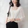 Вязаный кардиган, свободная женская шаль, ажурная рубашка с защитой от солнца и кондиционером