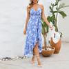 Женские сексуальные нерегулярные платья на шее, длинные пляжные платья с цветочным принтом на бретельках
