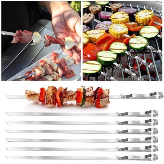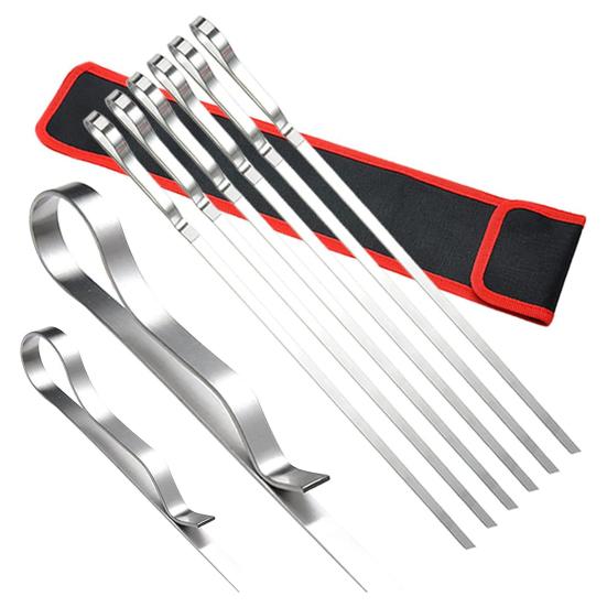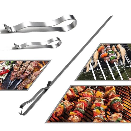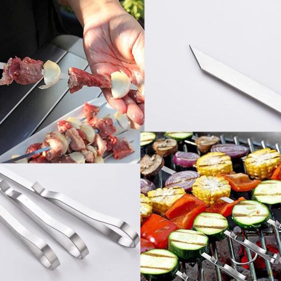 Премиальная конструкция из нержавеющей стали: Изготовленные из высококачественной нержавеющей стали, эти шампуры для шашлыка отличаются прочностью, устойчивостью к ржавчине, коррозии и жаропрочностью, что обеспечивает длительный срок службы.