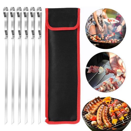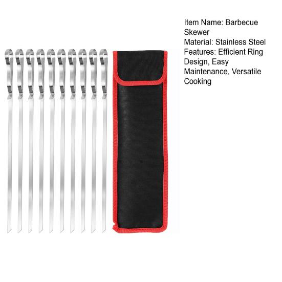 Эффективная конструкция кольца: Легко вешайте, мойте и сушите плоские металлические палочки для барбекю благодаря круглой форме кольца. Для удобства переноски и организованного хранения аккуратно храните их в прилагаемом тканевом мешочке.