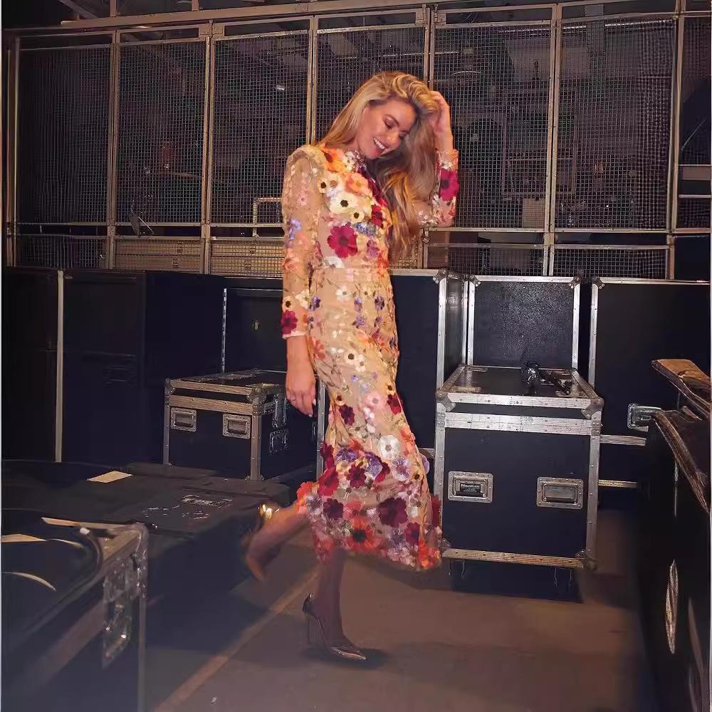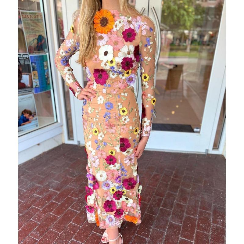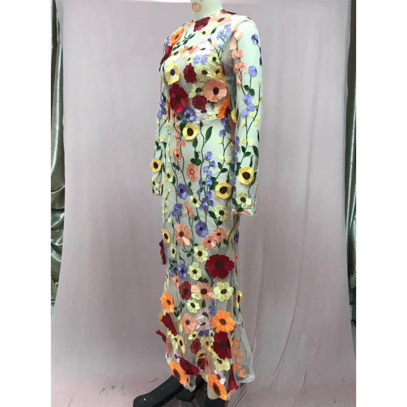 Женские летние длинные платья с круглым вырезом и трехмерной цветочной вышивкой, облегающая упаковка, длинные платья с рыбьим хвостом