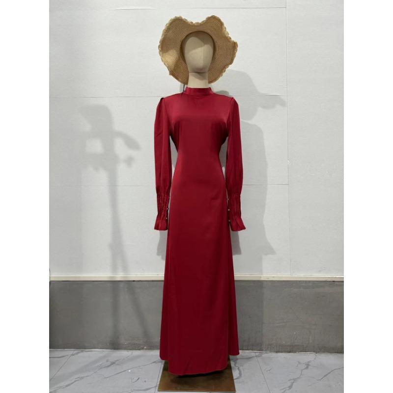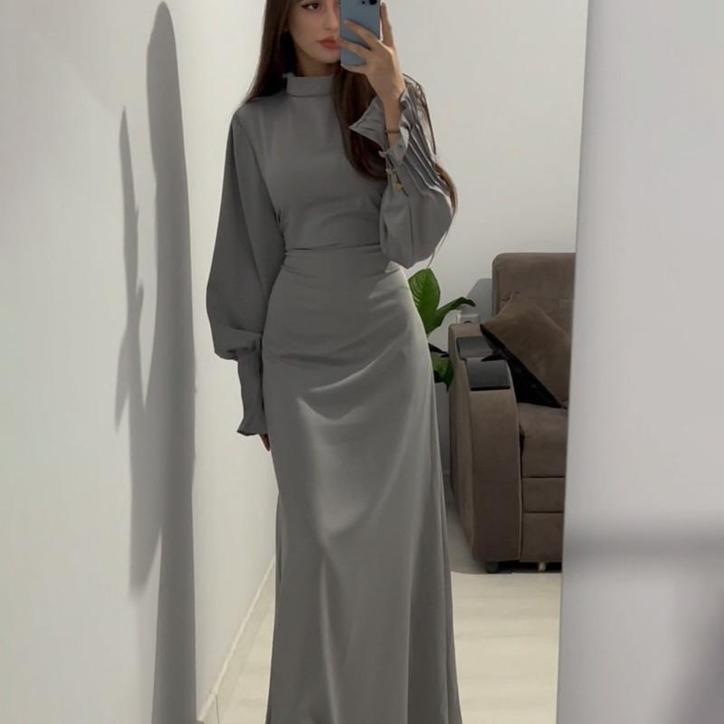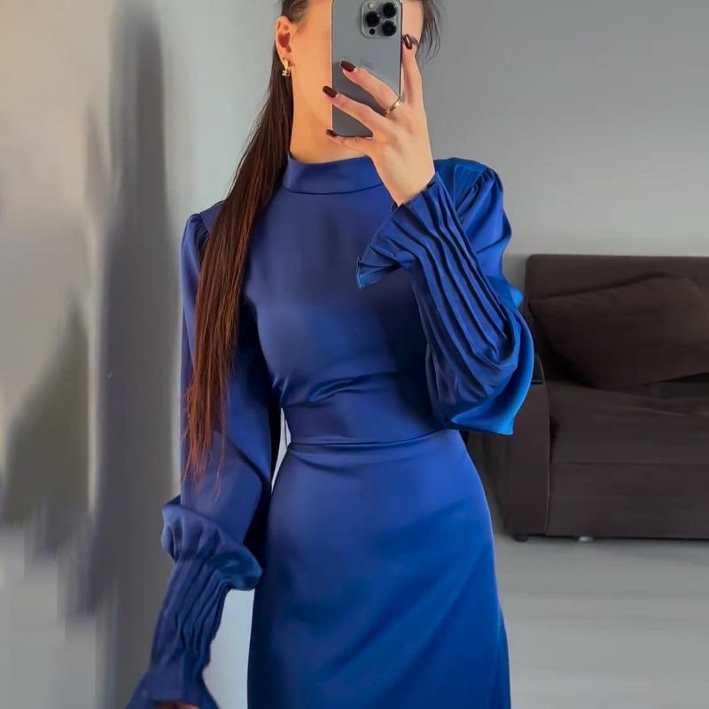 Женское плиссированное платье с длинными рукавами и завязкой на талии