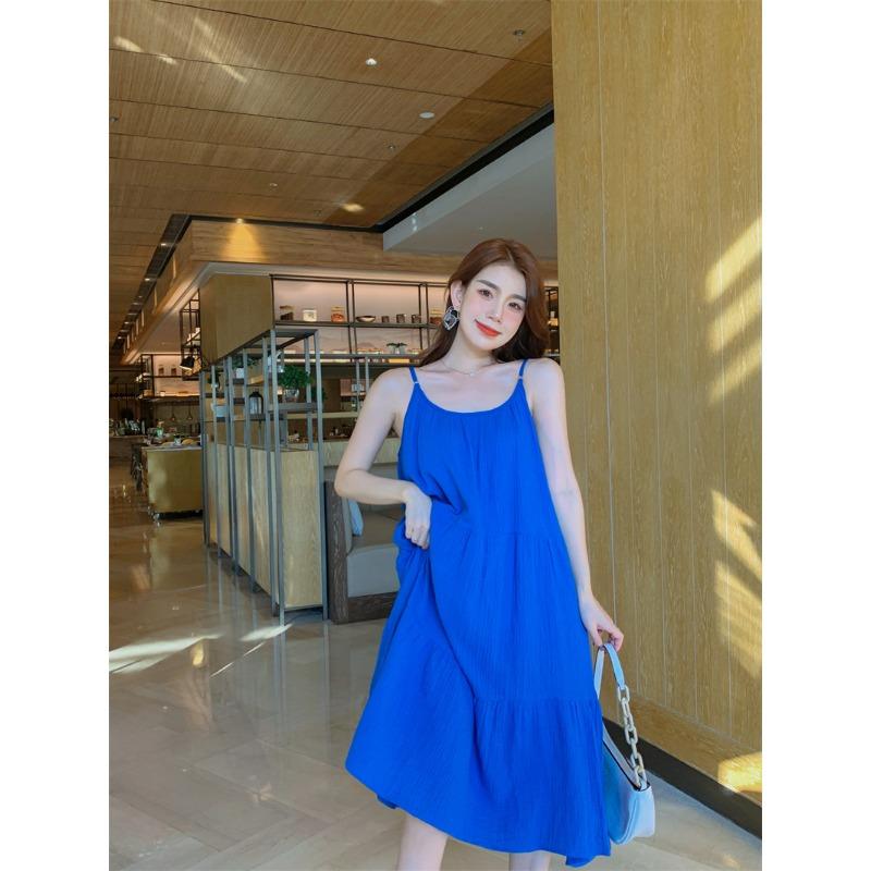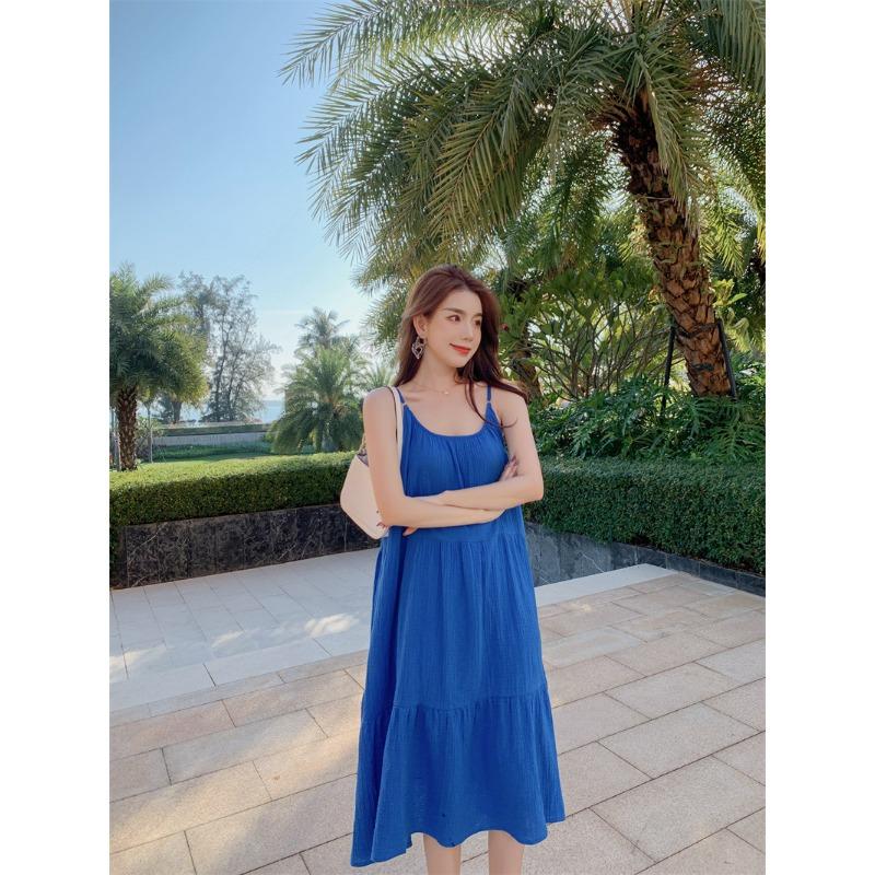 Женские летние длинные платья с лямкой на бретельках для морского отдыха