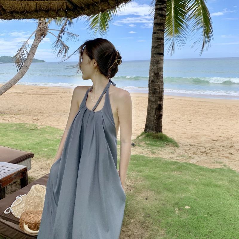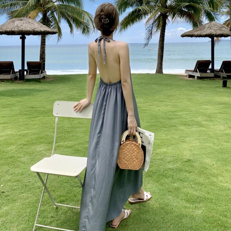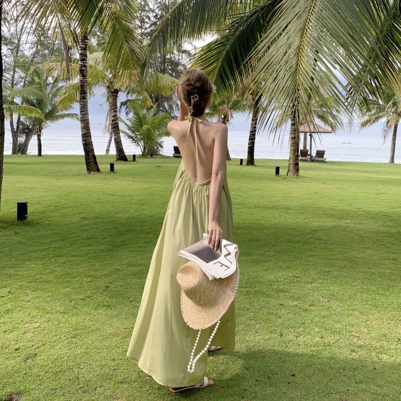 Женские летние платья с открытой спиной и вырезом на морском побережье