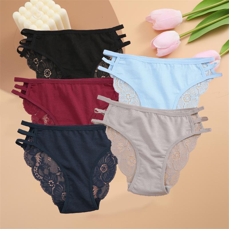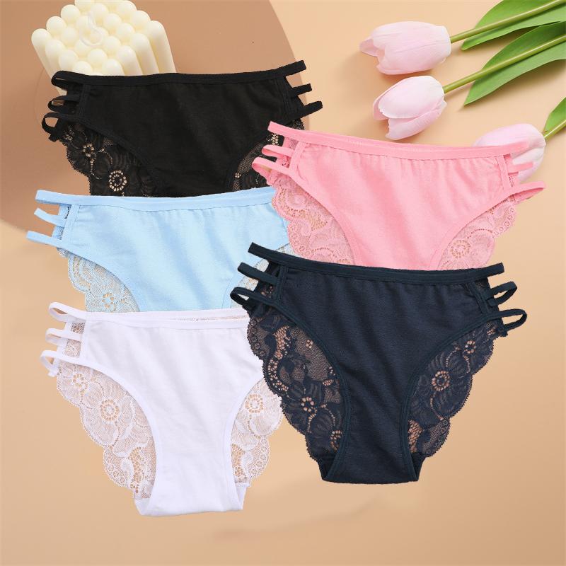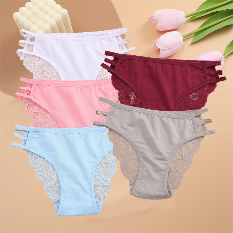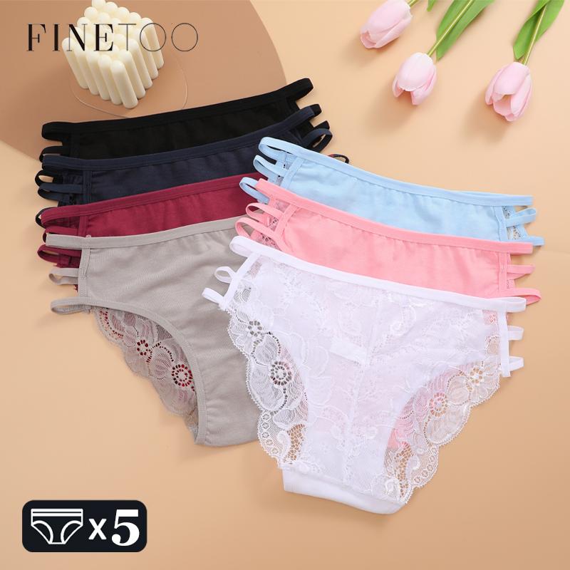 FINETOO 5 шт. женские кружевные цветочные трусы сексуальные тройные пояса трусики женские трусы с низкой талией перспективные трусы мягкое нижнее белье