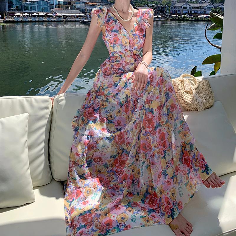 Женские летние длинные платья с цветочным принтом и морским праздником с завязками