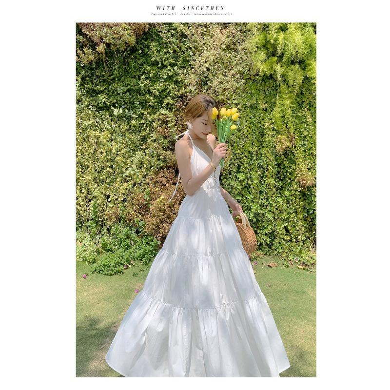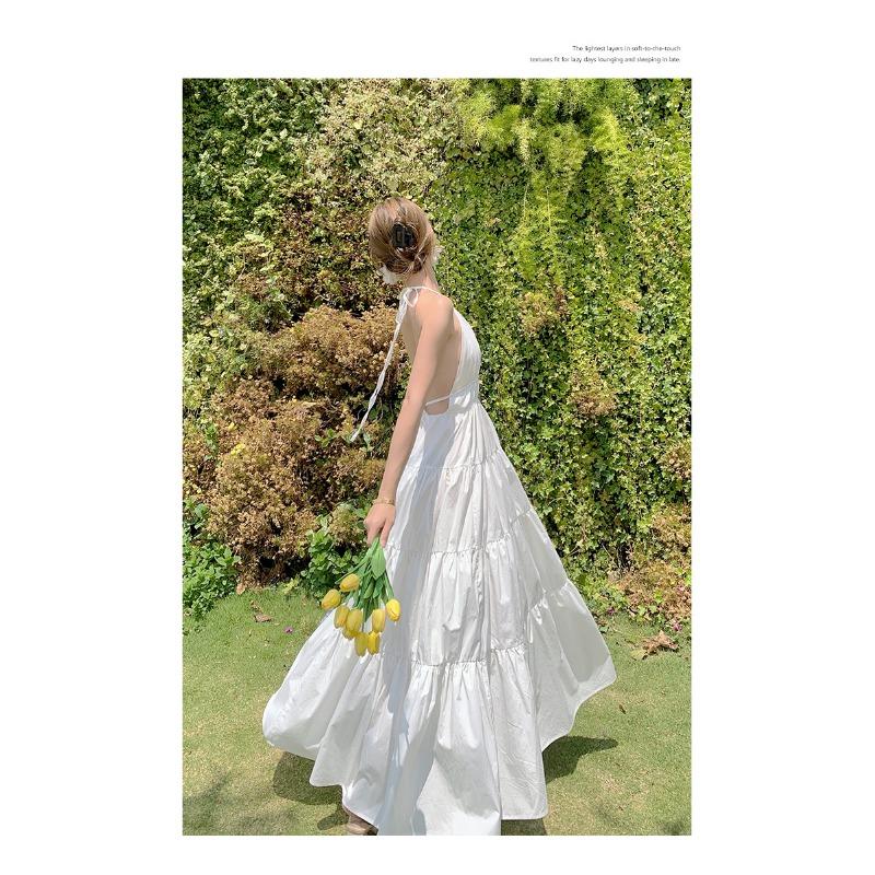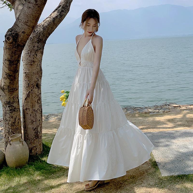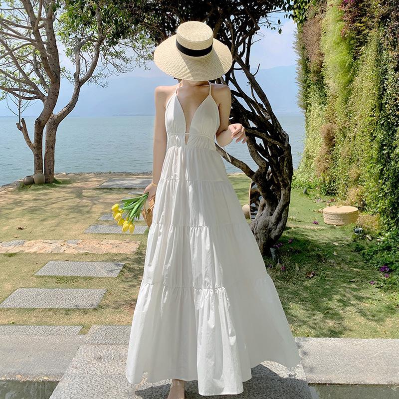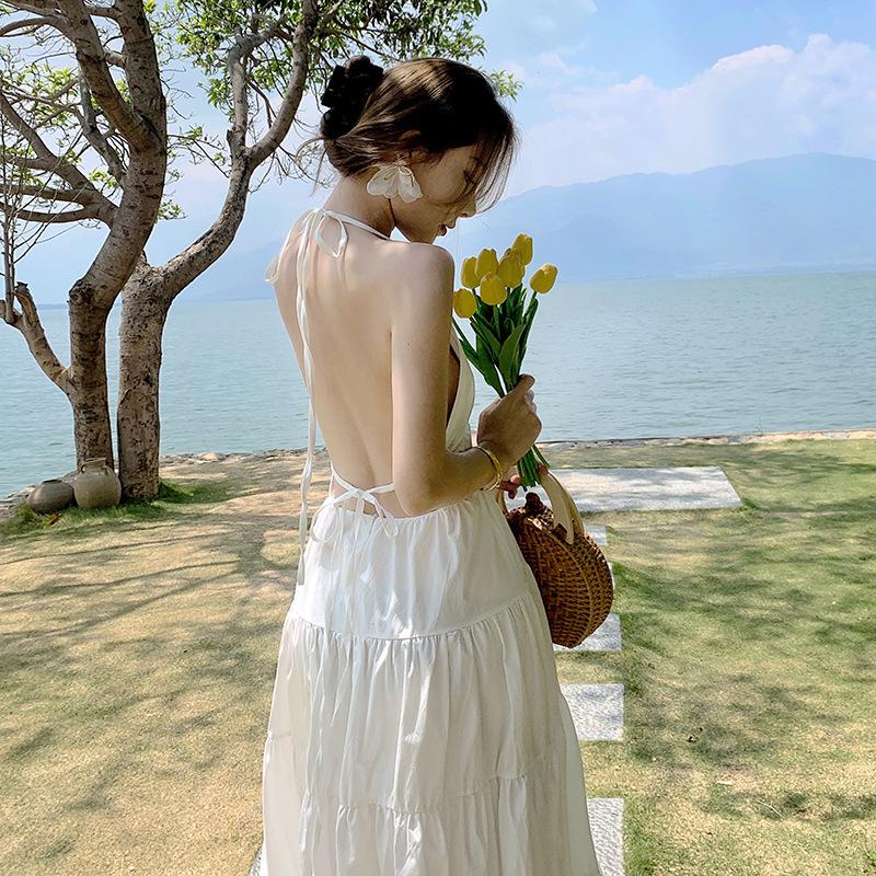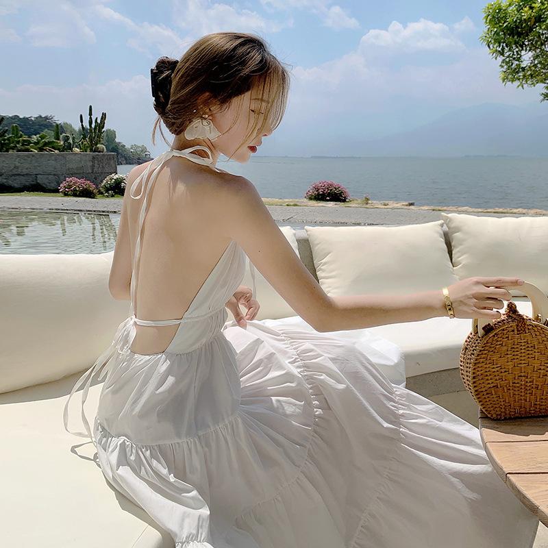 Женские летние длинные свободные платья с открытой спиной и подвеской на шее, праздничные длинные свободные платья