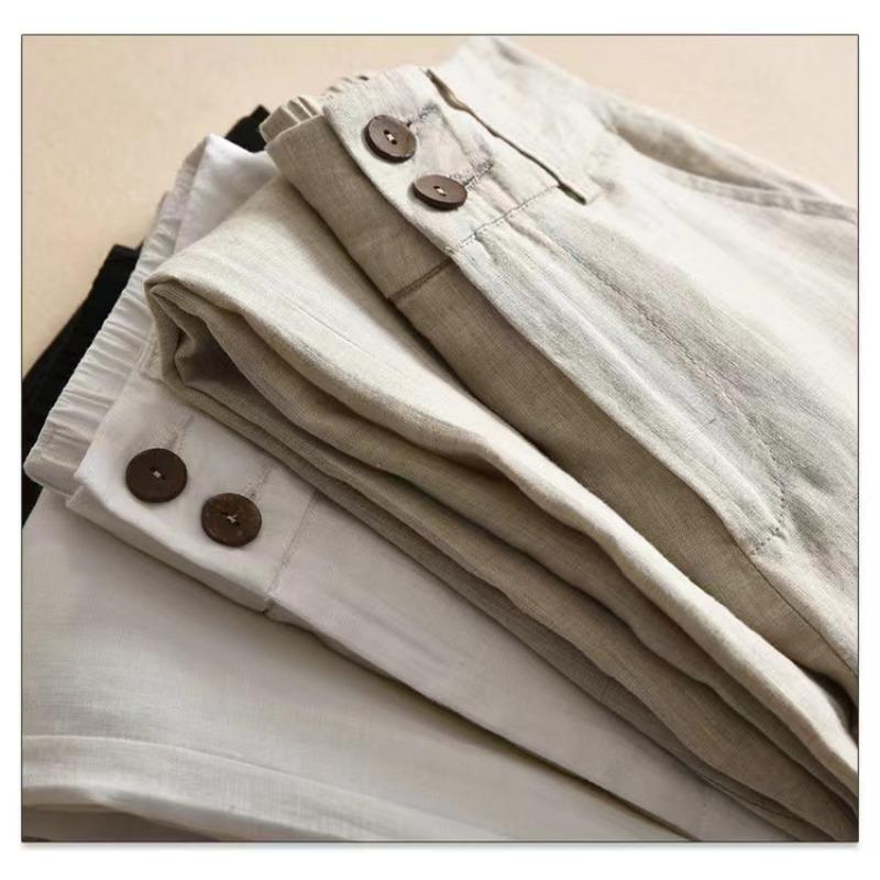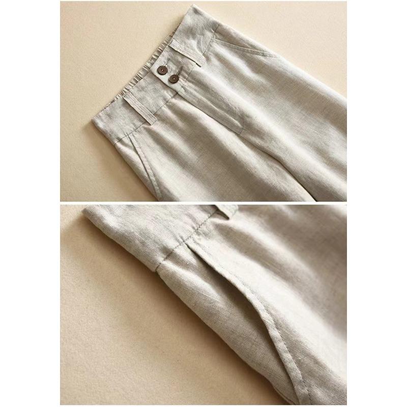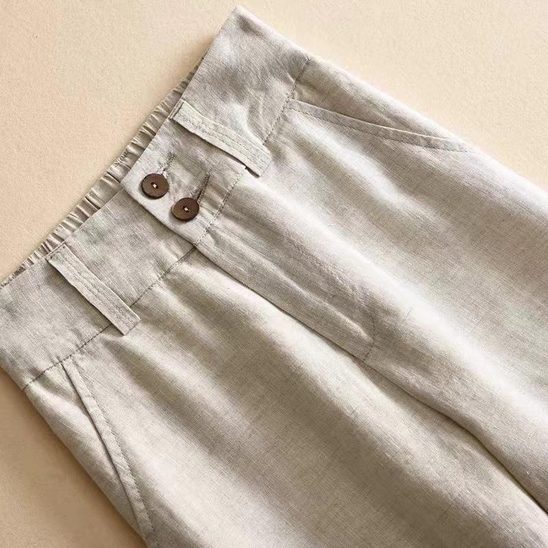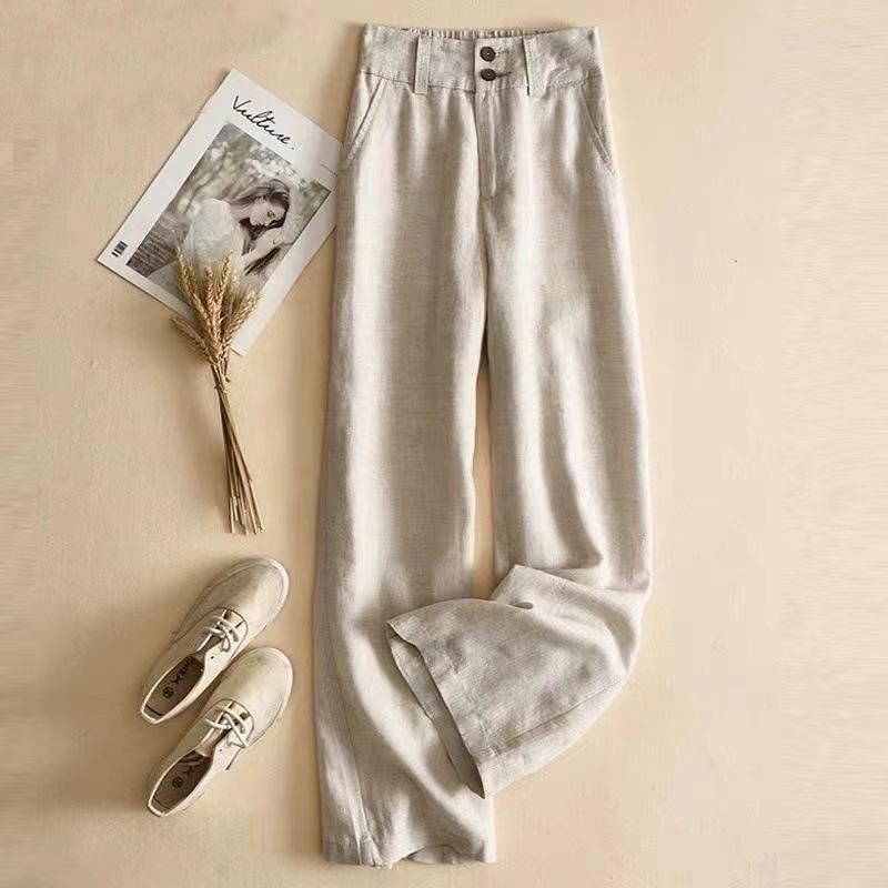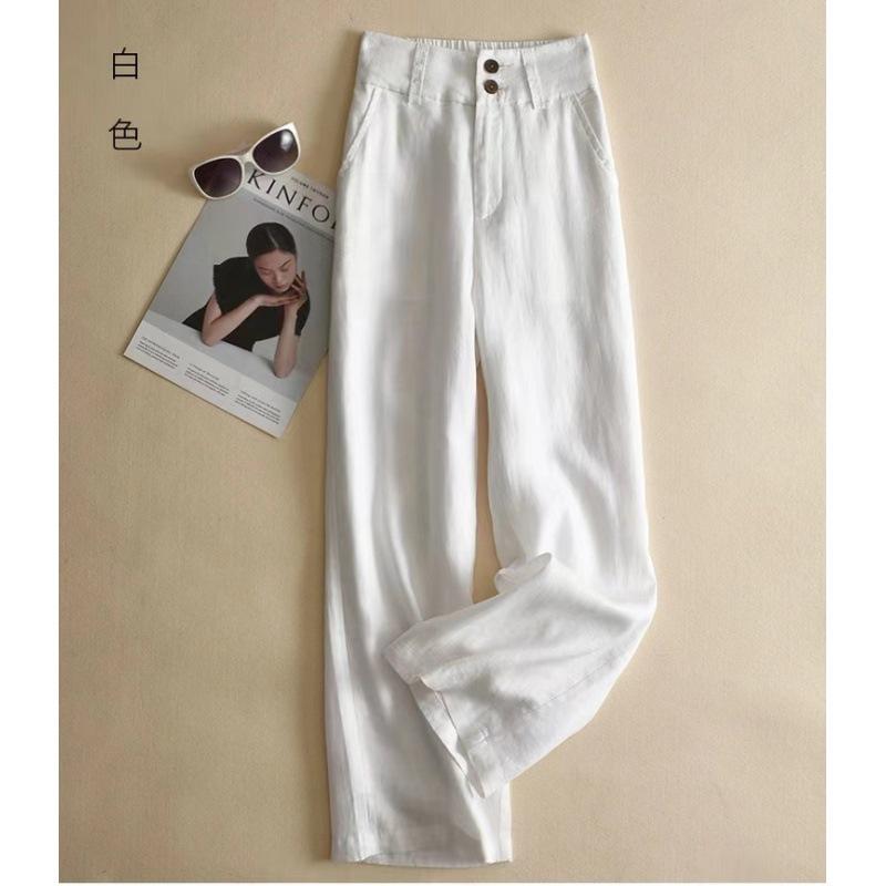 Женские летние свободные повседневные прямые брюки из хлопка и льна с высокой талией