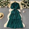 Женские кружевные лоскутные длинные платья с пышными рукавами и талией
