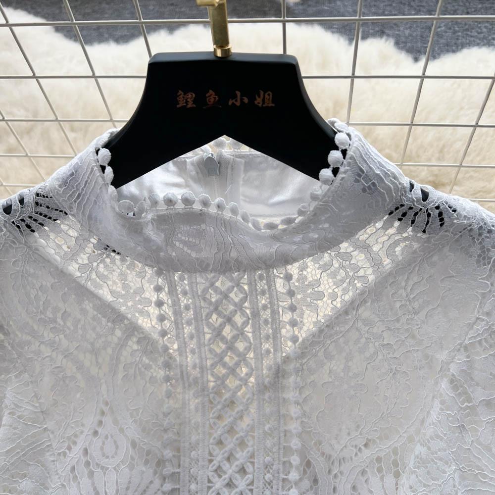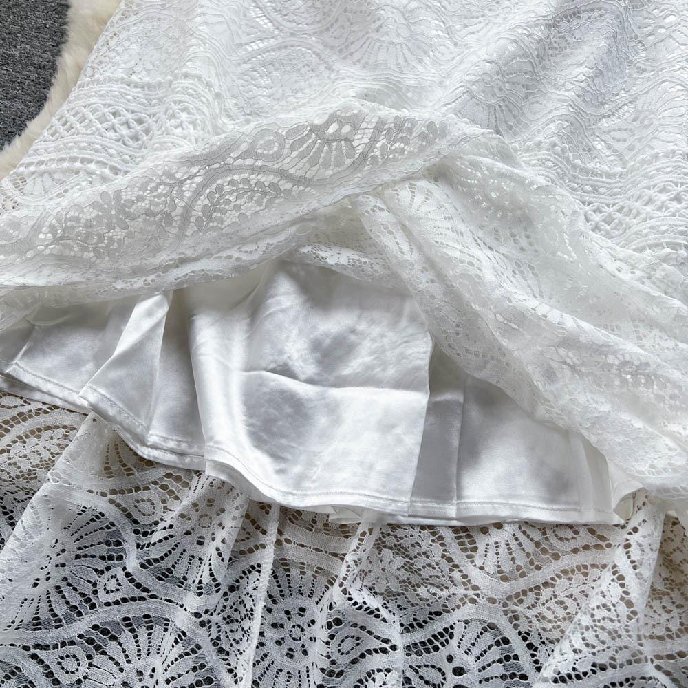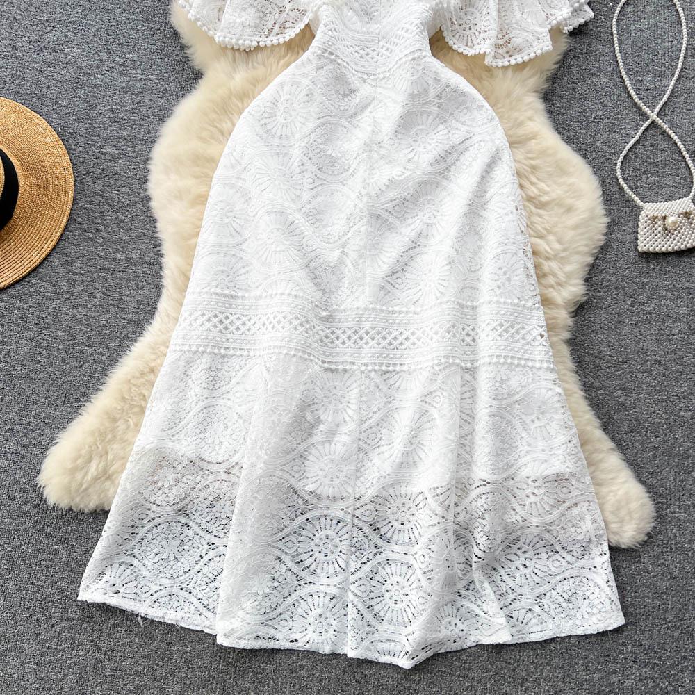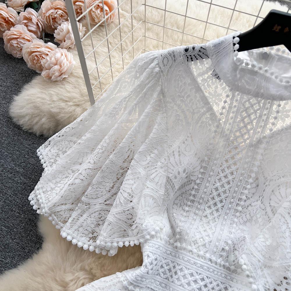Женские летние кружевные вышивки с полыми рюшами и рукавами темпераментные платья