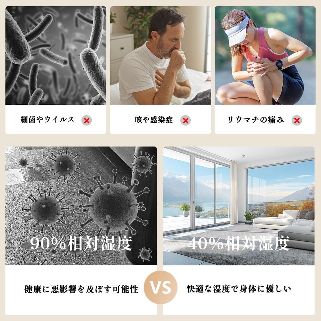 [Поддерживает до 13 татами и 3 режима] Этот осушитель воздуха на основе Пельтье может обрабатывать до 13 зон татами и эффективно удаляет влагу из любого помещения, будь то деревянный дом или дом из армированной стали.. Особенно в дождливые и влажные сезоны вы можете поддерживать влажность во всем помещении на комфортном уровне.. Идеально подходит для мест, где скапливается влага, например, для ванных комнат.. Кроме того, поддержание подходящего уровня влажности подавляет рост пылевых клещей и бактерий, создавая комфортную и чистую среду обитания.. Кроме того, он оснащен тремя типами режимов осушения.: спящий режим, обычный режим и интенсивный режим, позволяющие вам работать оптимально в соответствии с вашими условиями использования и потребностями.