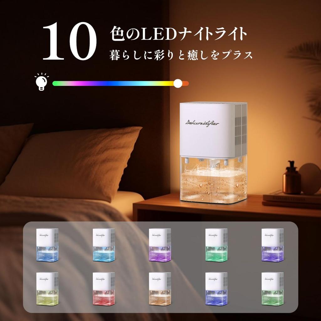 [10-цветная светодиодная подсветка и безопасная конструкция] Этот осушитель воздуха не только практичен, но и имеет внутренний дизайн. Оснащен светодиодным ночником, который можно переключать на 10 цветов, чтобы оживить атмосферу вашей комнаты.. Комфортный мягкий свет оказывает расслабляющее действие, что делает его идеальным для использования перед сном или в гостиной.. Кроме того, заботясь о безопасности, он оснащен «функцией защиты от опрокидывания», которая автоматически останавливает работу, если осушитель опрокидывается или падает.. Это предотвращает несчастные случаи и неприятности в доме и может безопасно использоваться даже в домах, где есть маленькие дети и домашние животные.. Это безопасное и надежное устройство, которое не только защищает от влаги, но и добавляет красок в вашу жизнь.