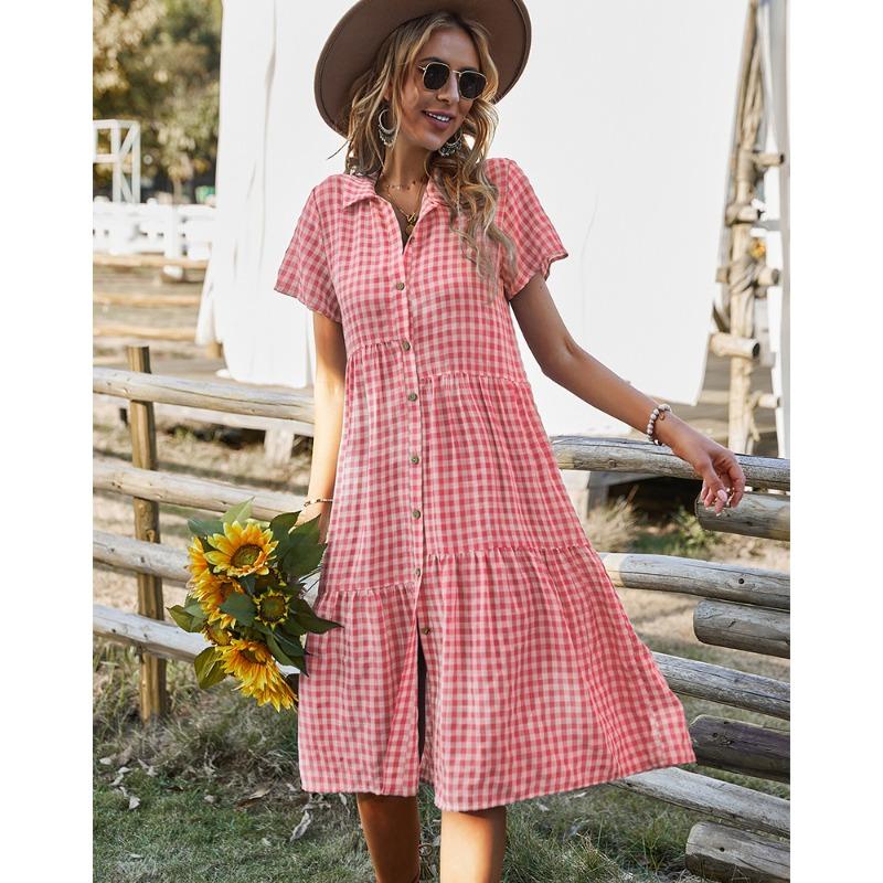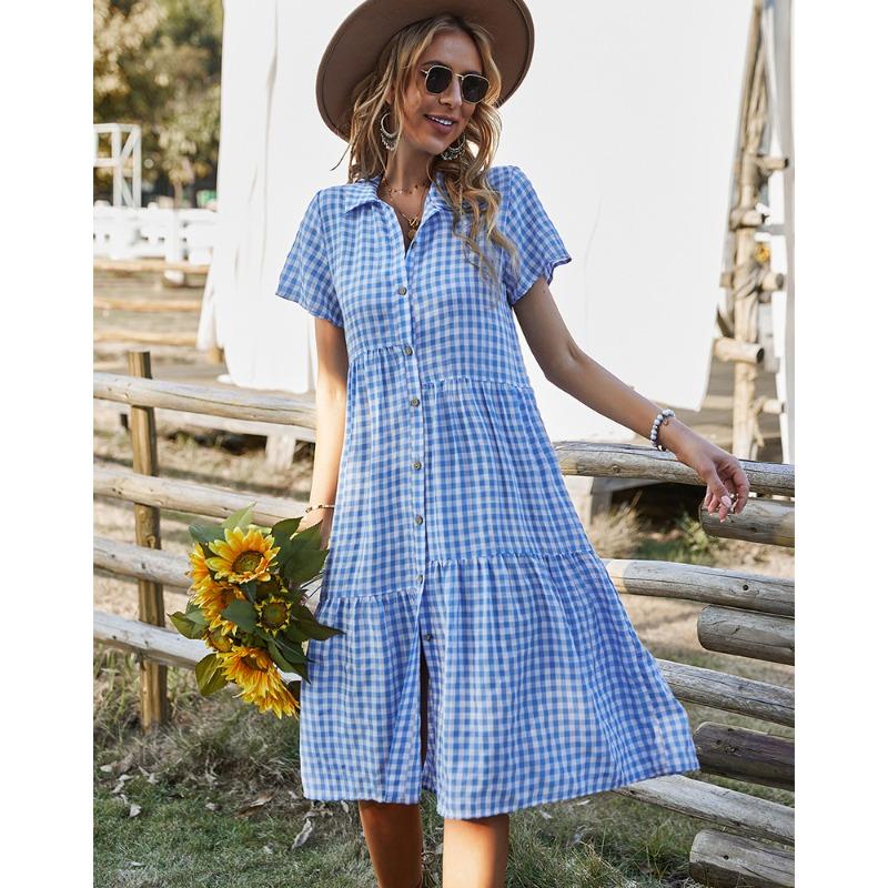 Летняя женская повседневная юбка в клетку с воротником-рубашкой