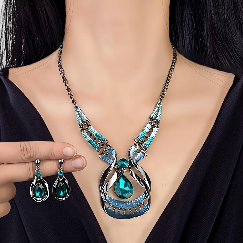 Модный комплект ювелирных изделий, ожерелье, серьги-гвоздики, блестящий элегантный кулон с искусственным драгоценным камнем, 1 комплект, форма капли воды, блестящая мода — купить товар онлайн с бесплатной доставкой по всему миру!