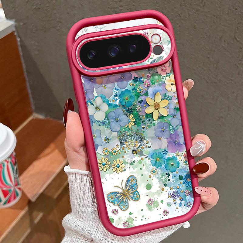 Мягкий чехол для телефона с рисунком в виде цветка маслом для Google Pixel 9 Pro XL 8 Pro 8A с принтом бабочки TPU матовый противоударный защитный бампер для объектива