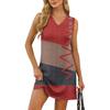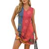Женский летний повседневный сарафан без рукавов с V-образным вырезом для пляжного отдыха в стиле пэчворк с цветными блоками